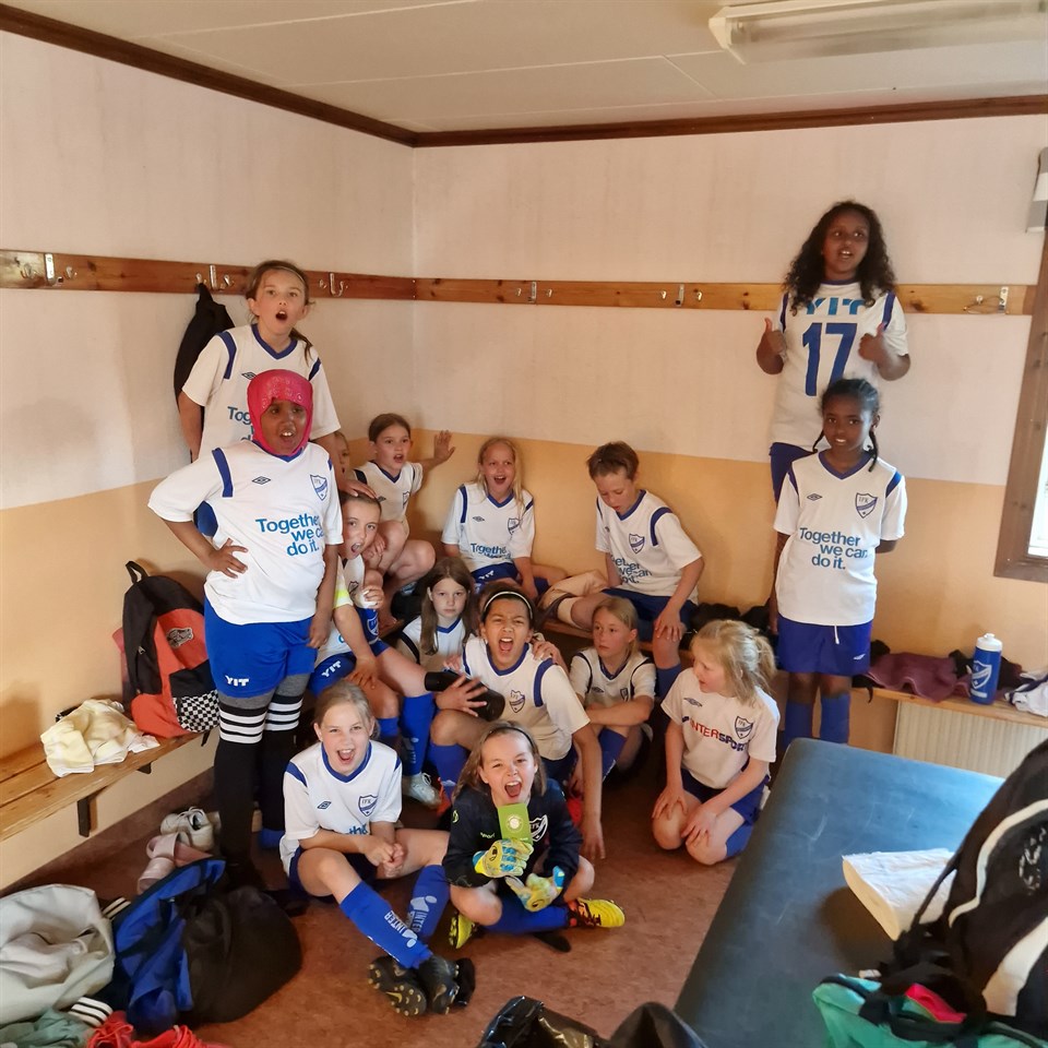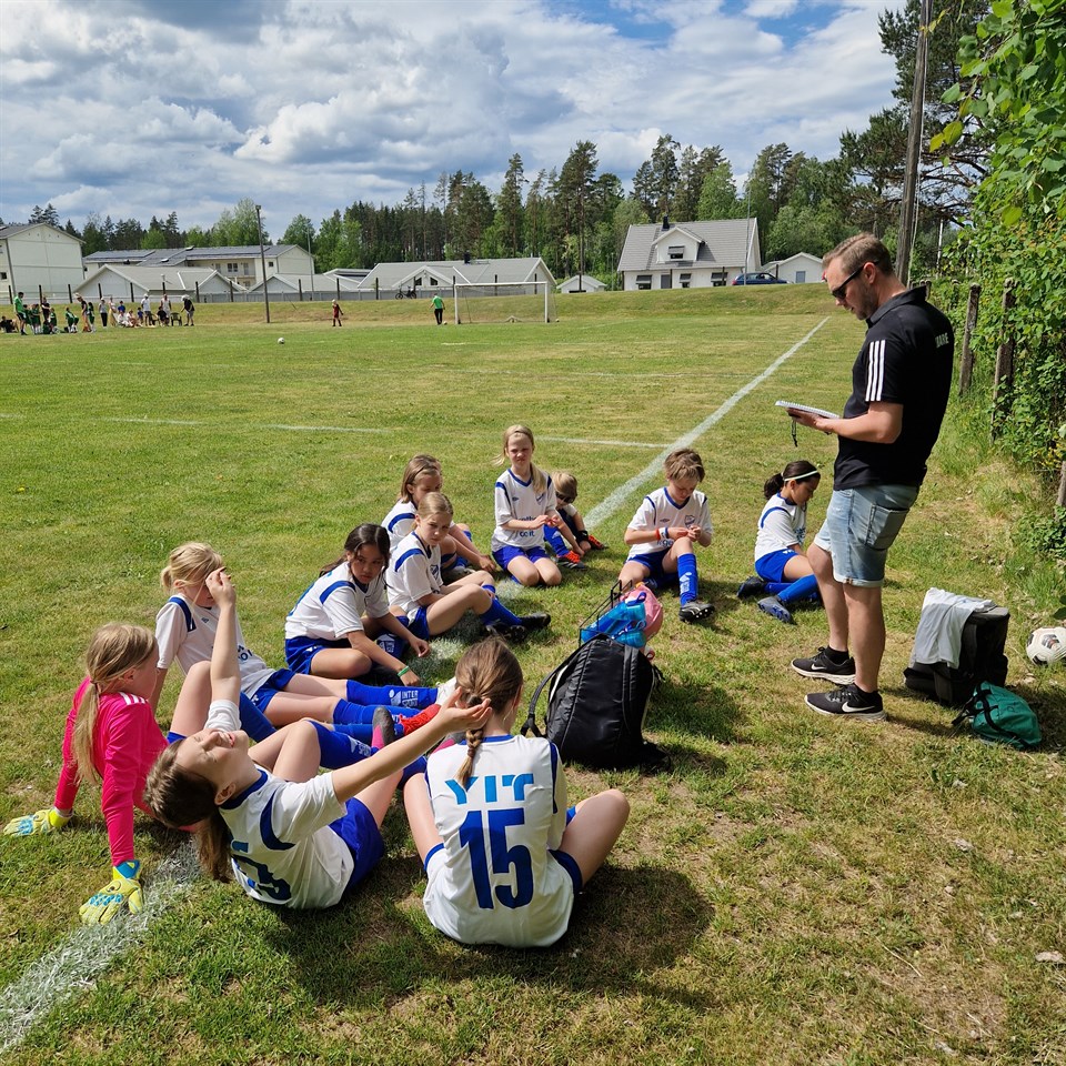 Åter hemmamatch på Bulevallen, men den här gången blir det inga rader om "härligt sommarväder". Tjejerna som för dagen var fjorton till antalet möttes av en blöt plan och blåst med ytterligare väta under matchens gång. Första perioden blev en jämn tillställning med lite mindre chanser än det vanligtvis brukar bjuda på. De våra var framme några gånger men hade lite svårt att få bollen på mål. Tenhult likaså, men lyckades i slutet få till ett högt skott som letade sig in. Andra perioden började i Tenhults favör och de fick också utdelning genom både bra passningsspel och ett par felstuds för vår del. Slutdelen av perioden gick spelmässigt till våra blåvita, men Tenhults defensiv var stark. Resultat inför sista, 0-4, och lite deppigt i pausen. Inför tredje hade i alla fall våra kämpat repat mod och skapade många lägen framåt som ledde till flera farligheter och påföljande hörnor. Tyvärr förvaltades inte hörnorna på bästa sätt. Det var istället två individuellt starka insatser som gjorde att det blev riktigt spännande på slutet. Stolpe och bra målvaktspel i Tenhult gjorde att matchen stängdes på 2-4. Sammanfattningsvis ganska jämn kamp där ett effektivt Tenhult med ett grymt försvarsspel ändå vinner rättvist. Vi gör en bra förmiddag försvarsmässigt och tar tillsammans med glädjen i laget, det vidare för kommande utmaningar. Härligt också att det, trots lite motgångar, inte påverkar sammanhållningen och viljan att fortsätta träna i laget! Kanske att vår nya maskot, älgen Äskil, påverkar humöret positivt. Han har i alla fall börjat bra 😊 Nästa match blir borta i Lekeryd och då tar vi nya tag!
